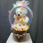 Поздравить с рождением ребенка можно красиво и необычно с этим подарочным набором. Мягкий плед, погремушка-грызунок и мягкая игрушка - простые нужные вещи, упакованные в полимерный шар помогут выразить ваши радостные чувства. Цветовое решение композиции подходит и мальчикам и девочкам.