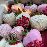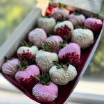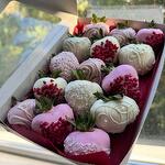 Свежая клубника в белом шоколаде с кокосовой стружкой и сублимированной клубникой