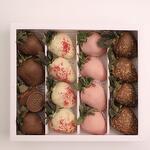 16 клубник в бельгийском шоколаде ассорти В дополнении используются посыпки: сублимированная малина, вафельная крошка; Шоколад ручной работы