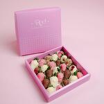 Потрясающая сладость, которая поднимет вам настроение – Клубника в шоколаде. Этот изысканный десерт включает в себя дюжину бережно отобранных ягод, обмотанных в три вида бельгийского шоколада от Callebaut. А именно: 9 штук в молочном, 8 штук в розовом и 8 штук в белом вариантах. Для добавления остроты вкуса, некоторые ягоды дополнены ореховой начинкой и кокосовой стружкой. Композиция шоколада включает в себя такие высококачественные ингредиенты, как сахар, масло какао, сухое цельное молоко, тертое какао, эмульгатор соевый лецитин и натуральный ароматизатор ванили. Каждый кусочек этого десерта подарит вам незабываемые ощущения.