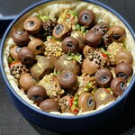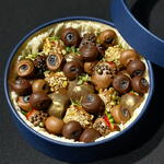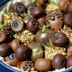 Клубника в молочном бельгийском шоколаде Callebaut, клубника в тёмном бельгийском шоколаде Callebaut, украшенная грецким орехом и воздушным рисом. Голубика в молочном бельгийском шоколаде Callebaut, голубика в темном бельгийском шоколаде Callebaut.
