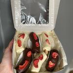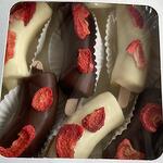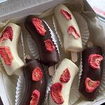 Свежие бананы, белый и молочный бельгийский шоколад, сублимированная клубника