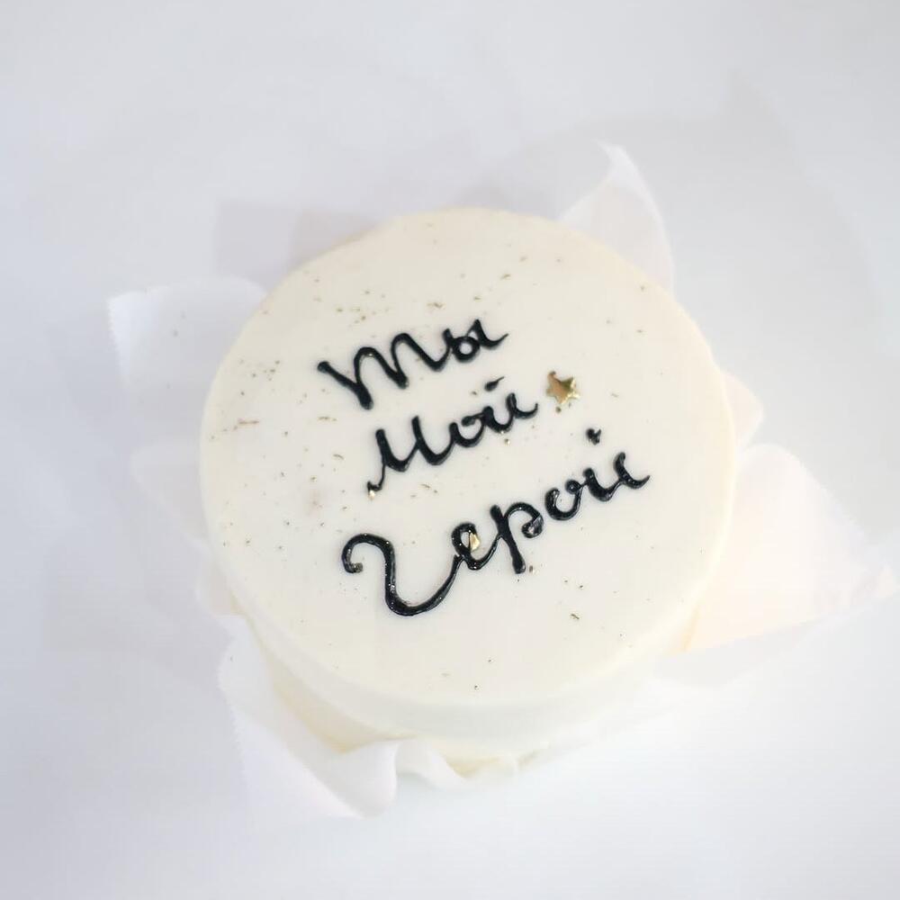 Праздничный бенто-торт, оформленный в патриотичном стиле к 7 Мая — дню защитников Отечества. Легкий, нежный и по-настоящему праздничный десерт в индивидуальном формате. Подходит как для личного поздравления, так и для коллективного подарка. Декор в фирменном стиле Fidelio: тематическая надпись, символика и минималистичный стиль.