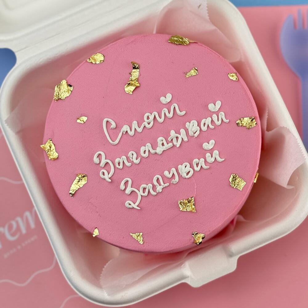 Бенто торт с любой надписью В комплекте с тортиком идет свечка, ложка, крафтовый пакет
