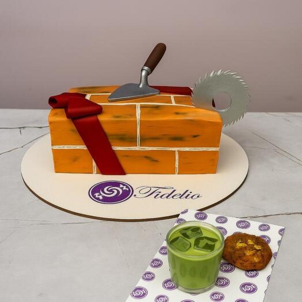 Идеальный и креативный подарок для строителя, архитектора или просто человека с отличным чувством юмора. Яркий дизайн в виде кирпичной кладки с лопаткой и пилой — настоящий wow-эффект на празднике! Внутри — нежные коржи и кремы, которые можно подобрать под вкус заказчика. Также в комплект идёт ложка и свечка в подарок.