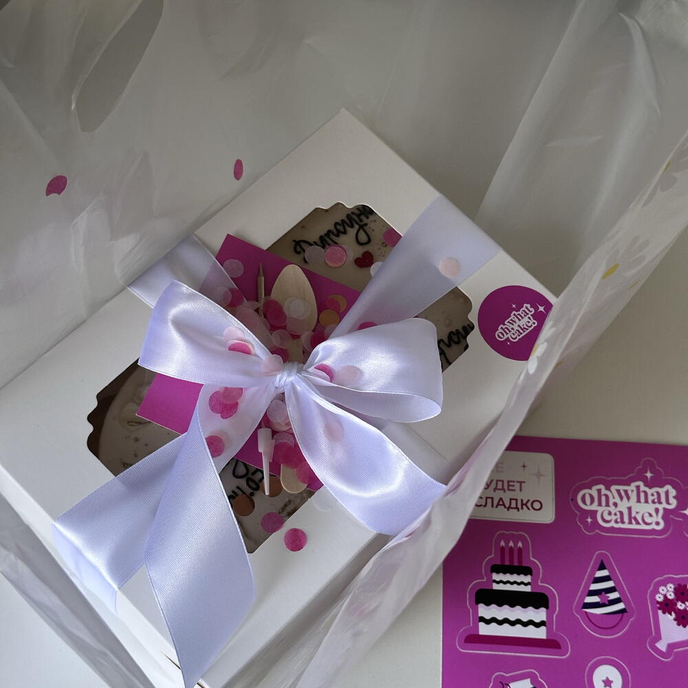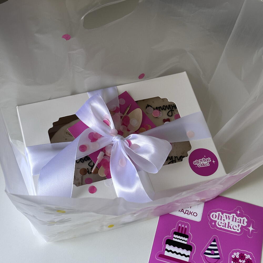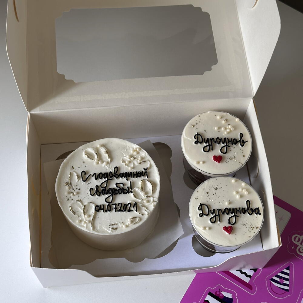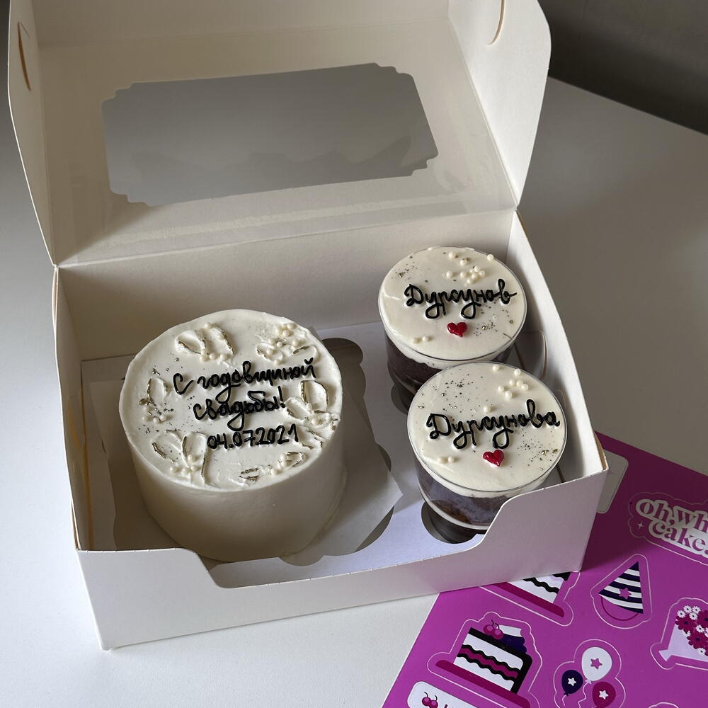Бенто торт + трайфлы с вашей надписью/ дизайном✨ Начинку для бенто торта можно выбрать, трайфлы по умолчанию идут шоколад- карамель🤗♥️ Укажите в комментариях детали заказа или в чате♥️ С любовью, команда Oh, what cake!✨