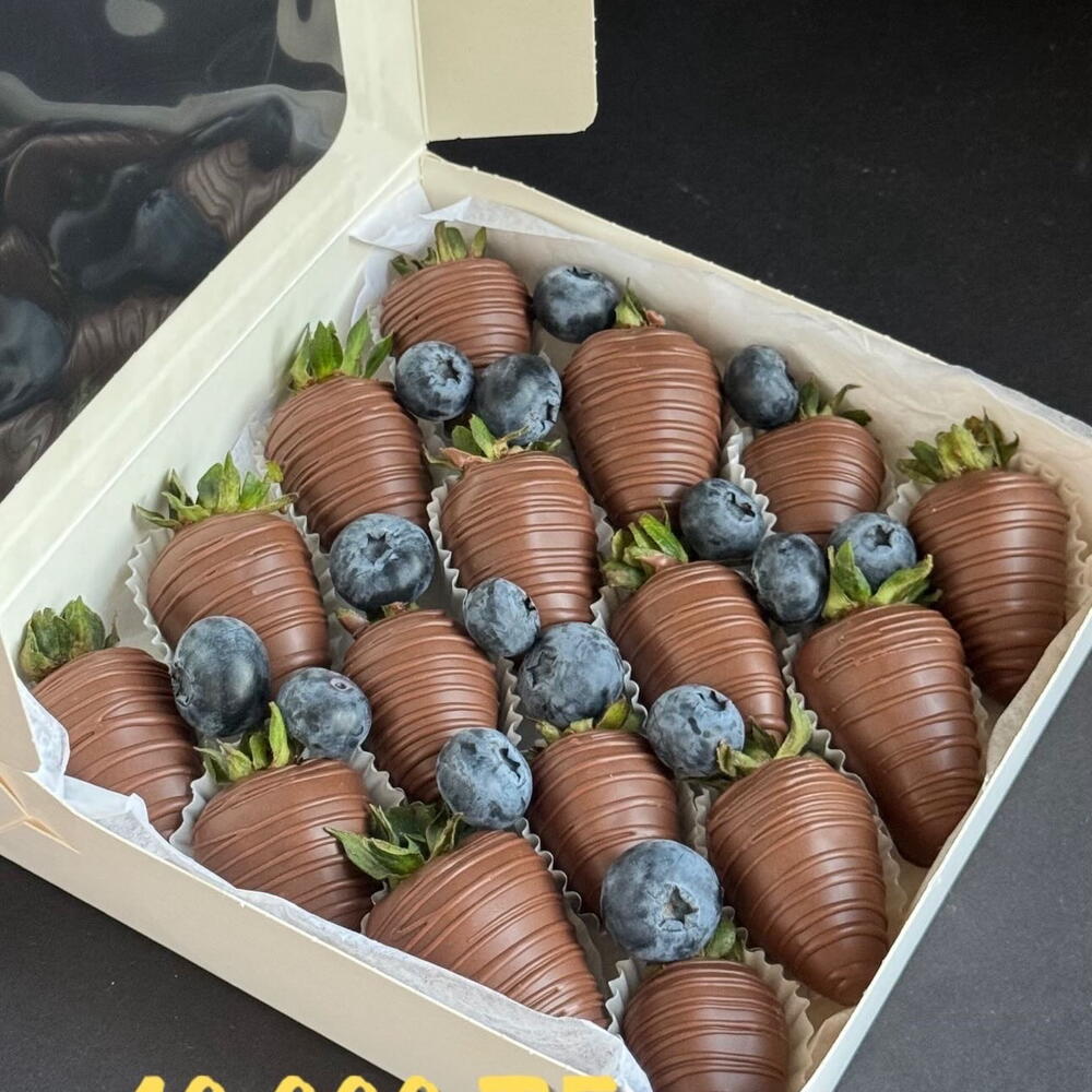 16 штук клубники в молочном шоколаде с добавлением голубики