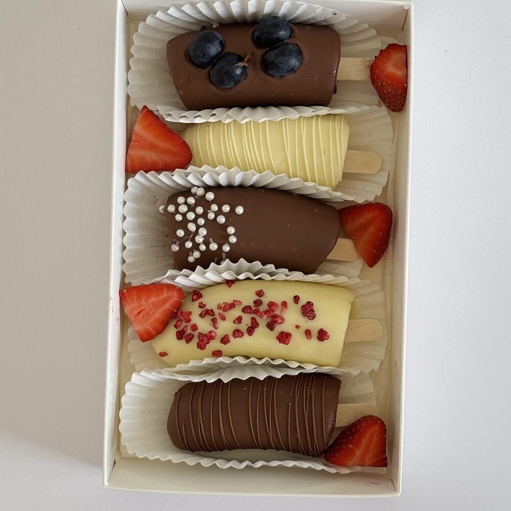 Свежие бананы, молочный шоколад Callebaut (сахар, какао-масло, цельное молоко в порошке, какао-масса, эмульгатор — соевый лецитин, натуральный ароматизатор ванили).