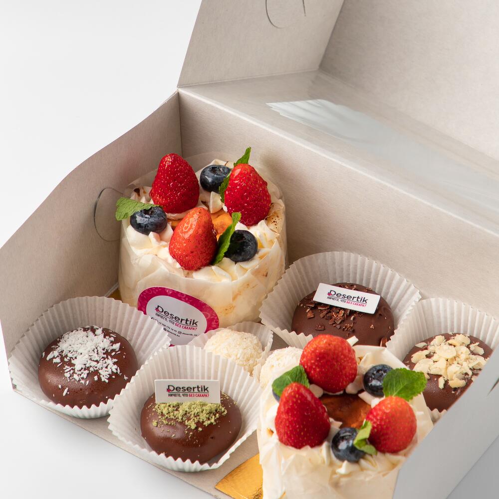 Испанский чизкейк - 2 шт Пирожное картошка - 4 шт Кокосовая конфета - 2 шт