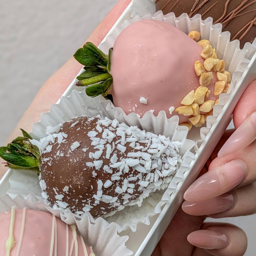- 5 клубник - Молочный и белый шоколад - Декоративное пищевое украшение (посыпка) .