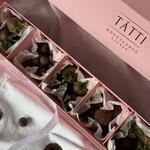 Нежная розовая коробочка в форме пенала с аккуратными ручками — стильный и утончённый подарок, который производит впечатление с первого взгляда. Эстетика, вкус и премиаль-ное качество в одном наборе. Внутри — 5 аккуратных ячеек с изысканным наполнением: • 12 отборных ягод клубники в шоколаде (3 ячейки) • Голубика в шоколаде — 100 г (1 ячейка) • 5 трюфелей «Вишневый брауни» (1 ячейка) Трюфель — это многослойное наслаждение: в центре — яркий вишневый мармелад, вокруг — нежный ганаш на тёмном бельгийском шоколаде Callebaut, снаружи — тонкий слой глазури из тёмного шоколада и обсыпка крошкой брауни. Идеальный вариант для подарка на День влюбленных, день рождения или просто чтобы порадовать любимого человека.