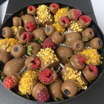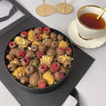 Шикарная круглая коробка с ягодами и фруктами в молочном шоколаде — идеальное сочетание вкуса и стиля 🍫🍓. В набор входят клубника, малина, голубика и кусочки бананов, щедро украшенные дроблёными орехами и хрустящими хлопьями. Каждый элемент покрыт нежным молочным шоколадом с лёгким золотистым блеском, что придаёт композиции роскошный и праздничный вид. Этот набор станет прекрасным подарком для любимого человека, друзей или коллег — универсальный, элегантный и невероятно вкусный. Храните при температуре от +2 до +6°C, избегая прямых солнечных лучей. За 10–15 минут до подачи достаньте из холодильника, чтобы шоколад стал мягче, а аромат раскрылся во всей полноте.