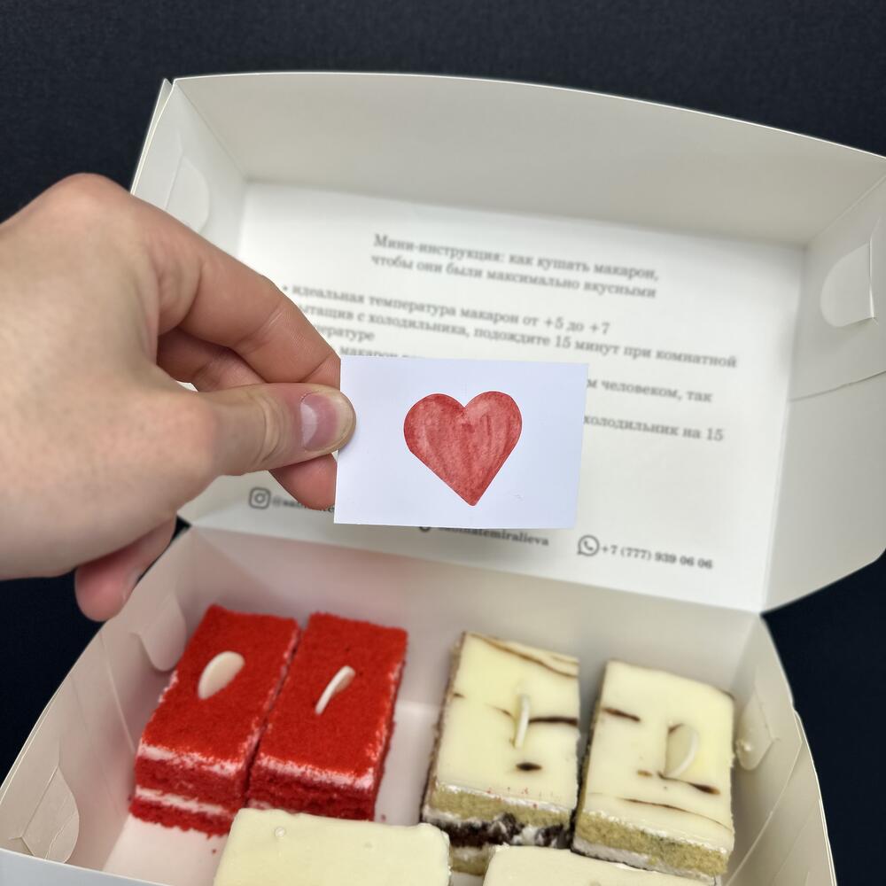 Откройте для себя удивительное сочетание вкусов с нашим боксом трио. Этот изысканный набор включает в себя пять пирожных: два “Красного бархата” с мягким бисквитом и кремом на основе сливочного сыра, два “Сникерса” с густым карамельным слоем и шоколадом, и один “Медовик” с нежными слоями медового бисквита и сливочно-медовым кремом. Идеально подходит для праздничного стола или в качестве подарка, который порадует каждого. А упаковка на твой выбор: домик или мини-бокс❤️(внутри валентинка, открытка и красивая красная ленточка)