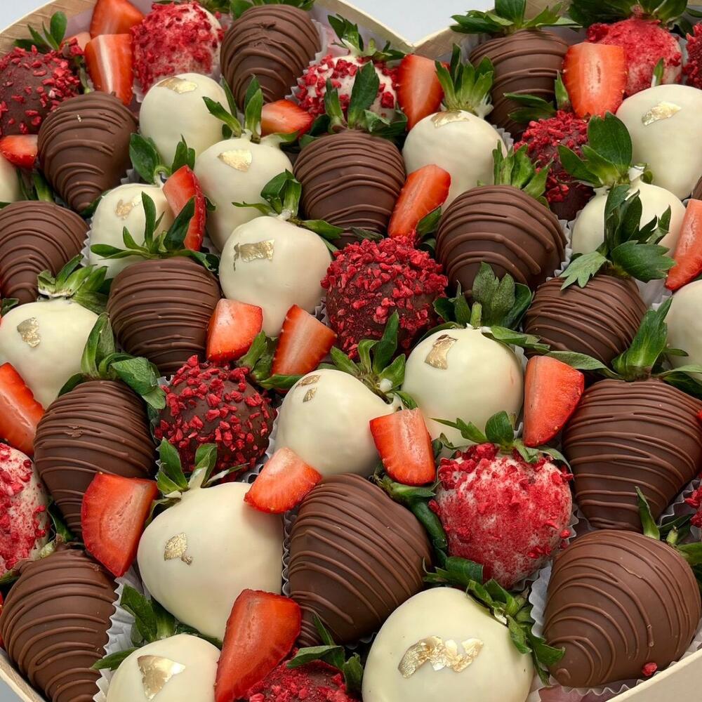 Отборная клубника в бельгийском шоколаде В боксе сердце, вкус который запоминается ❤️ Открытка в комплекте