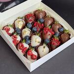 16 шт клубник в бельгийском молочном и белом шоколаде, украшенный сублимированной малиной и голубикой 🩷