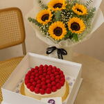 Изящный бенто-торт с воздушным кремом и спелой малиной сверху дарит лёгкость и свежесть в каждом кусочке. Его дополняет аккуратный букет свежих цветов, который делает подарок не только вкусным, но и по-настоящему праздничным и запоминающимся.