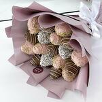 Сладкий и нежный букет с клубникой в шоколаде - идеальный подарок для любого события. В этом букете содержится 300г. Сочной клубники, покрытой аппетитным слоем темного или молочного шоколада. Он отлично подойдет как подарок к романтическому ужину, так и в качестве вкусного комплимента к особому случаю. Удивите своих близких и друзей необычным и вкусным подарком - букетом с клубникой в шоколаде!