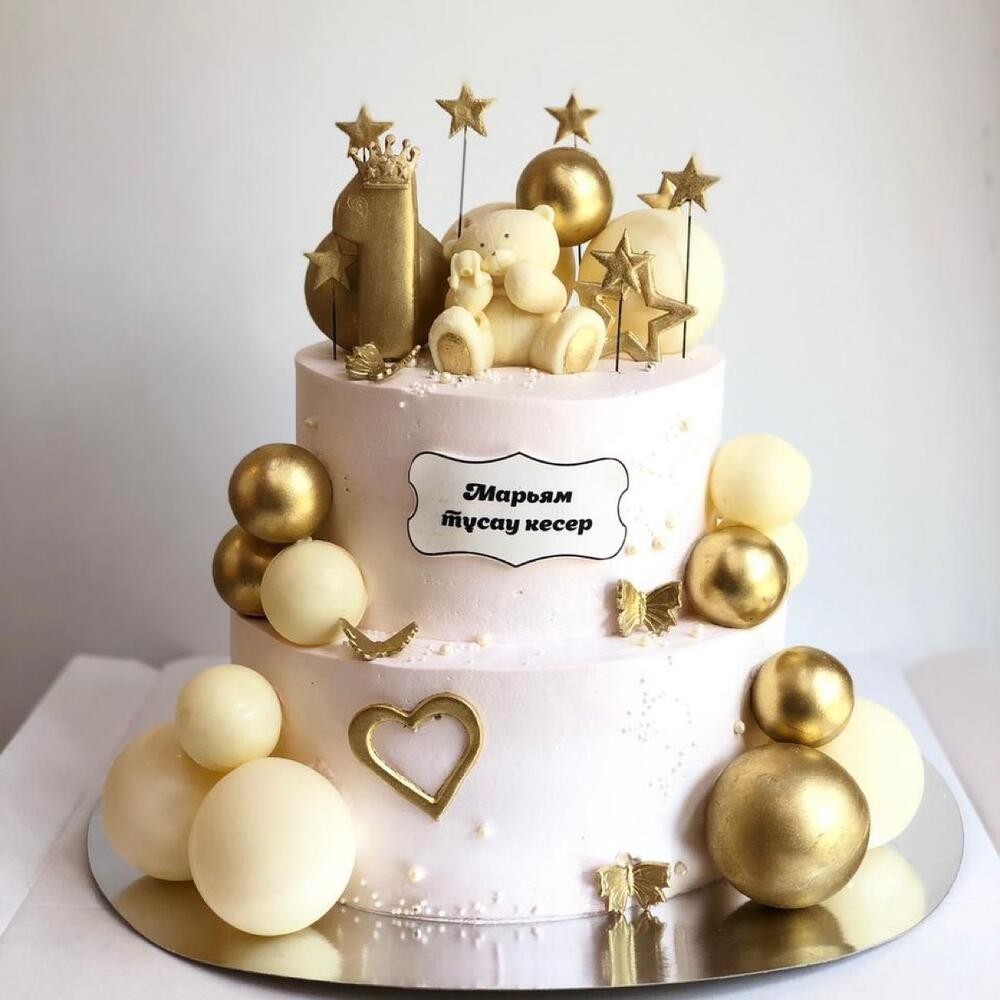 Двухъярусный торт на «Тұсау кесер, двухъярусный торт на день рождения, двухъярусный торт с шоколадными шариками 3 кг
