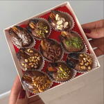 Роскошный набор фиников, начинённых белым бельгийским шоколадом и орехами, — это идеальное сочетание нежности, текстуры и насыщенного вкуса 🍫✨. Каждый финик без косточки аккуратно наполнен тающим белым бельгийским шоколадом и цельным орехом (миндаль или грецкий), а затем покрыт гладким слоем молочного шоколада. Сверху десерт украшен различными топпингами, которые добавляют индивидуальность и делают вкус многогранным: фисташковая крошка, кокосовая стружка, миндальные лепестки, дробленый арахис, вафельная крошка, шоколадная стружка. Такой набор — воплощение гармонии: сладость фиников, сливочность белого шоколада и хруст орехов создают идеальный баланс. Держите при температуре от +2 до +6°C, вдали от прямых солнечных лучей. Перед подачей достаньте из холодильника за 10–15 минут.