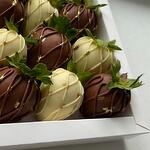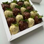 Сет из 16 клубник в бельгийском халяль-шоколаде Этот изысканный набор из 16 крупных и сочных клубник, покрытых нежным бельгийским халяль-шоколадом, создан, чтобы удивлять и радовать. Белый и молочный шоколад, украшенный утонченным узором и золотыми акцентами, придает ягодам роскошный вид, делая их неотразимым подарком или украшением праздничного стола. Каждая деталь набора пронизана заботой и вниманием к качеству, чтобы вы могли наслаждаться не только вкусом, но и эстетикой. Идеально подходит для особенных моментов или в качестве комплимента, выражающего ваши искренние чувства. Varda — искусство вкуса, забота о ваших эмоциях.