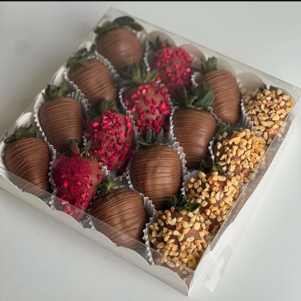 Сет из 16 клубник в шоколаде с элегантным оформлением Совершенство вкуса и эстетики в каждой детали: 16 сочных, отборных клубник, покрытых премиальным бельгийским халяль-шоколадом, украшены утонченными волнами из шоколада. Лаконичный и стильный дизайн, который подчеркивает изысканность вашего выбора. Идеально для подарка, романтического жеста или просто чтобы порадовать себя и близких. Этот сет объединяет вкус, стиль и заботу в каждой ягоде. Varda — подарки от сердца к сердцу. Вкус, который говорит за вас. ❤️