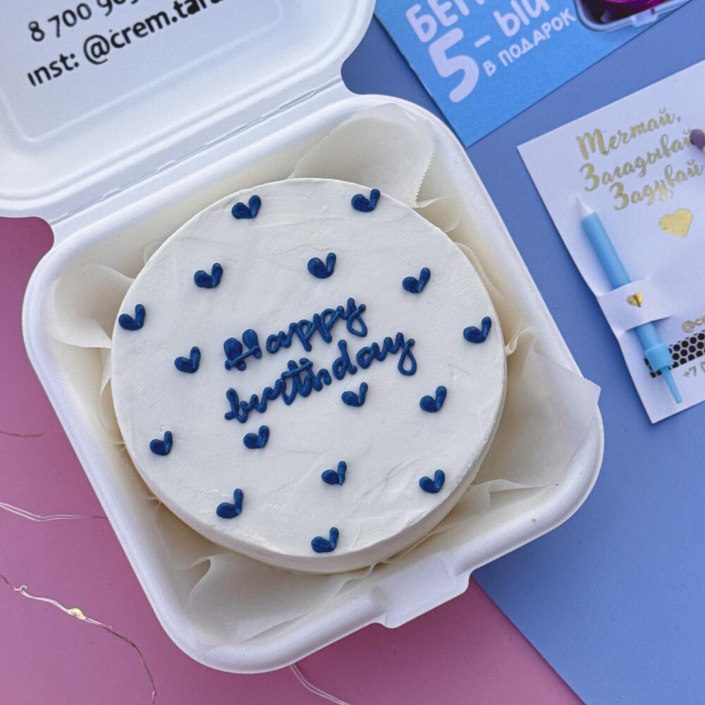 Бенто торт с любой надписью В комплекте с тортиком идет свечка, ложка, крафтовый пакет.