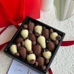 Сладостный вальс вкусов и ароматов: яркая сочная клубника в дуэте с нежнейшим шоколадом Callebaut. Удовлетворите свои гурманские пристрастия с этим шикарным набором из 16 шоколадных шедевров, воплощающих гармонию Инь и Янь. Восемь плодов блистают в облачке из молочного шоколада, а ещё восемь - завернуты в оболочку из белоснежного шоколада. Несравненный вкус дополняет утончённая нотка свежей голубики. Отличное дополнение к любому торжественному вечеру или куртуазному ужину. Продукт включает: комбинацию какао-бобов и какао-масла для непревзойденной текстуры, сахар для сладости, сливочное молоко или молочную сыворотку для молочного шоколада, соевый лецитин, который помогает ингредиентам смешиваться и улучшает текстуру, и, наконец, натуральные ароматизаторы, такие как ваниль, для неповторимого аромата. Побалуйте себя и своих близких вкуснейшей клубникой в шоколаде. Это сочетание вкусов и красоты станет прекрасным дополнением к любому празднику или особенному дню!