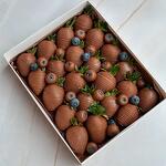 Состав на сет из клубник и голубики в бельгийском шоколаде: • Отборная свежая клубника — 20 шт. • Премиальный бельгийский халяль-шоколад (молочный, темный или белый) • Натуральное масло какао • Сахар • Молоко (в составе молочного и белого шоколада) • Ванильный экстракт Украшения (опционально): • Сублимированная клубника • Ореховая или вафельная крошка • Съедобный золотой или серебряный декор Мы заботимся о вашем здоровье и вкусовых предпочтениях, поэтому в нашем шоколаде нет искусственных добавок, консервантов и ГМО. Varda — сладкое удовольствие, созданное с заботой.