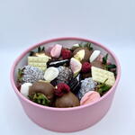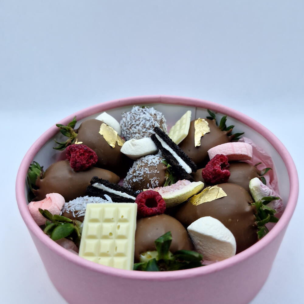 Нежный подарочный набор от Sweet Realm с клубникой в бельгийском молочном шоколаде. В боксе — свежая клубника, шоколадные элементы, кокосовые конфеты, маршмеллоу и корпусные конфеты, создающие уютный и насыщенный вкус. Идеальный вариант для тёплого подарка, сладкого комплимента или уютного вечера.