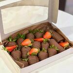 • Клубника в молочном шоколаде — свежие отборные ягоды, полностью покрытые молочным шоколадом с декоративными шоколадными полосками. В упаковке — цельные ягоды и половинки для яркого оформления. Идеально для подарка и сладкого стола.