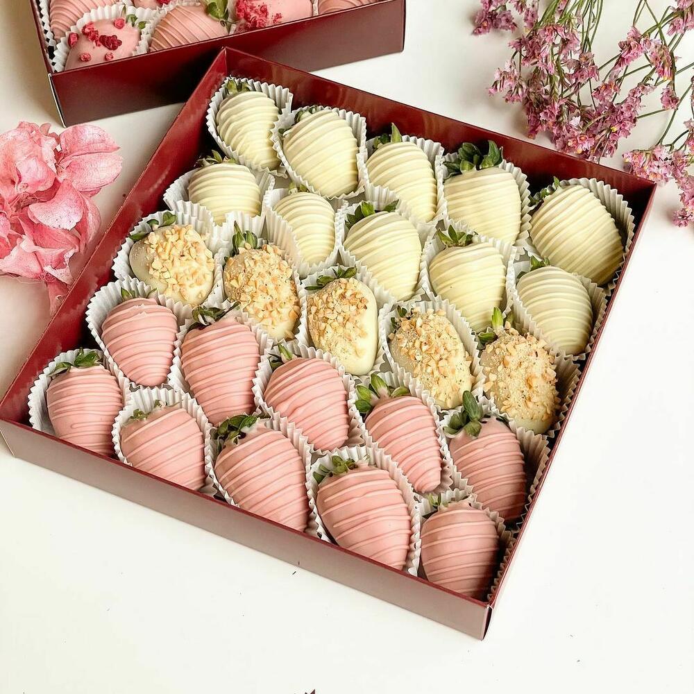 Клубничный бокс "Омбре", запомнится особенным вкусом сочной клубники в нежнейшем шоколаде!