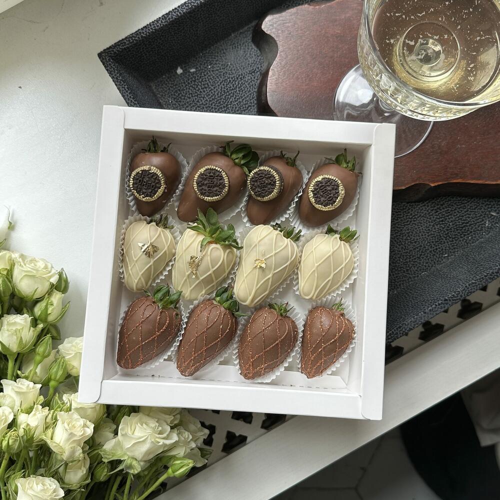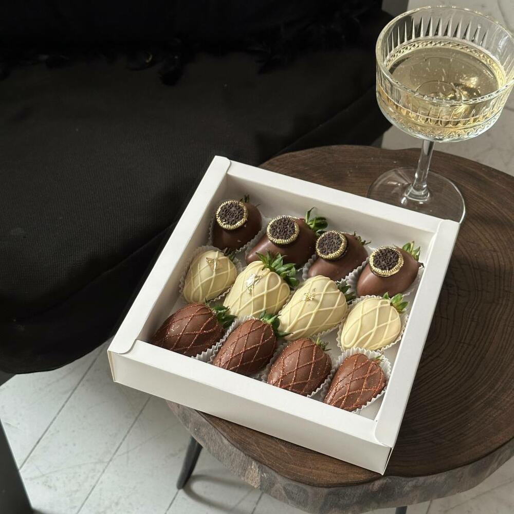 Клубничный бокс "Рокс S" запомнится особенным вкусом сочной клубники в нежнейшем молочном и белом шоколаде!