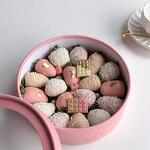 Коробка для макаронс - 1; Мини плитка (украшение для клубники) - 3; Открытка - 1; Клубника в шоколаде - 18;