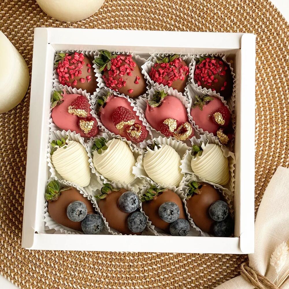 Клубника в шоколаде - 16; Коробочка для клубники - 1; Ягодный декор из малины и голубики-1