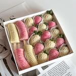 Бокс «Блонди» – это не только вкусный, но и красивый подарок. В нем вы найдете клубнику и бананы в белом и розовом итальянском шоколаде. Такой набор идеально подойдет в качестве сладкого комплимента или подарка для близких. Нежный дизайн бокса будет гармонично смотреться на любом столе или в качестве презента.