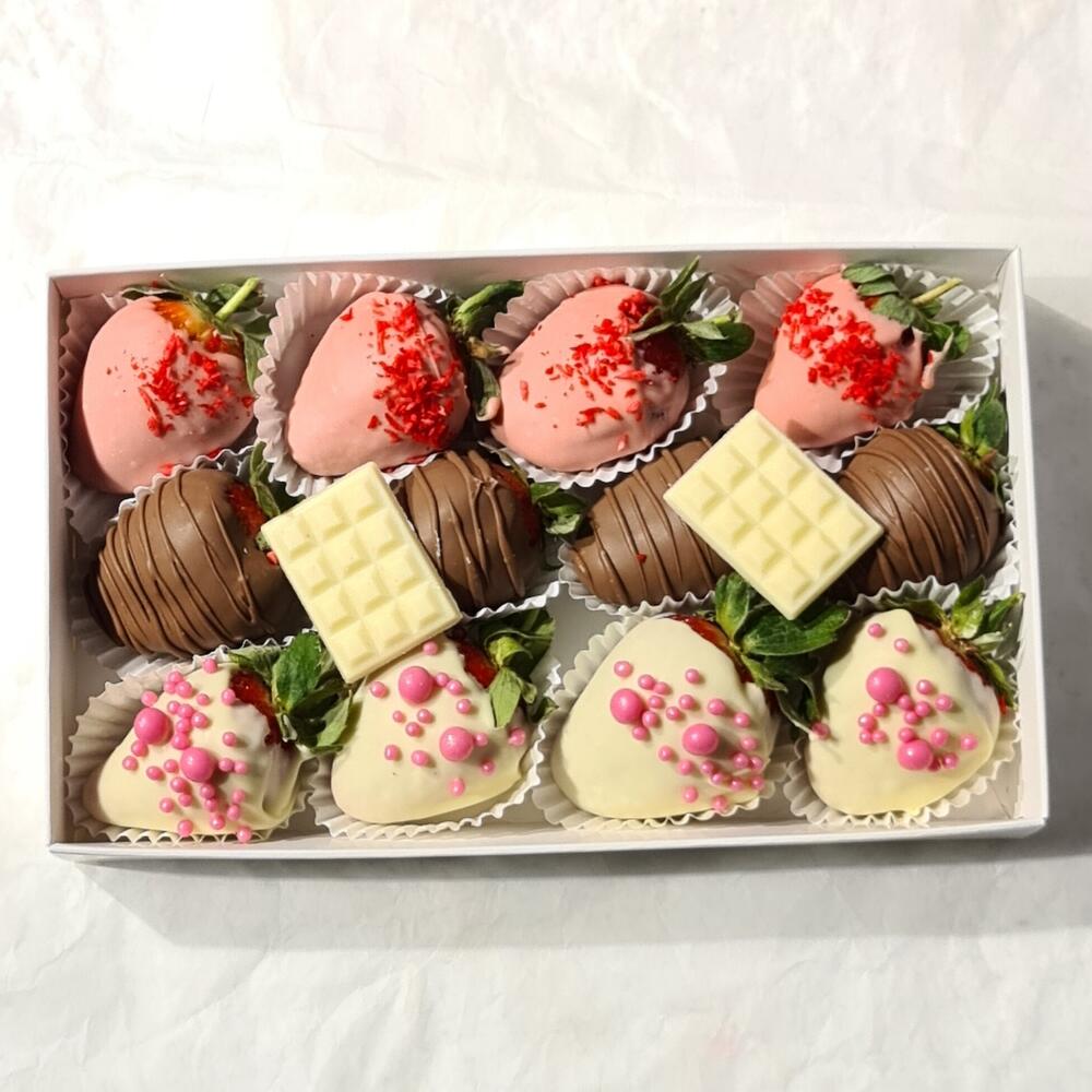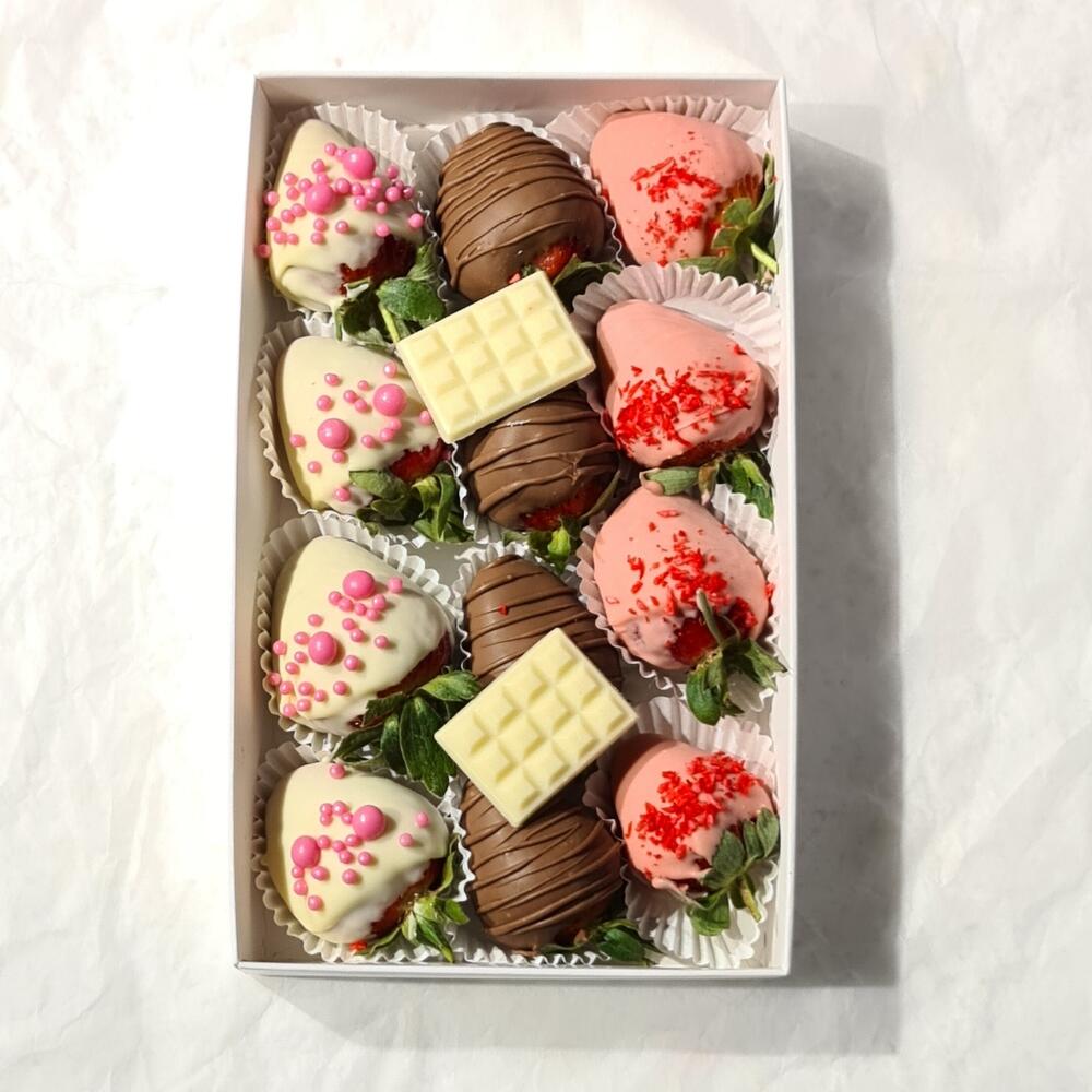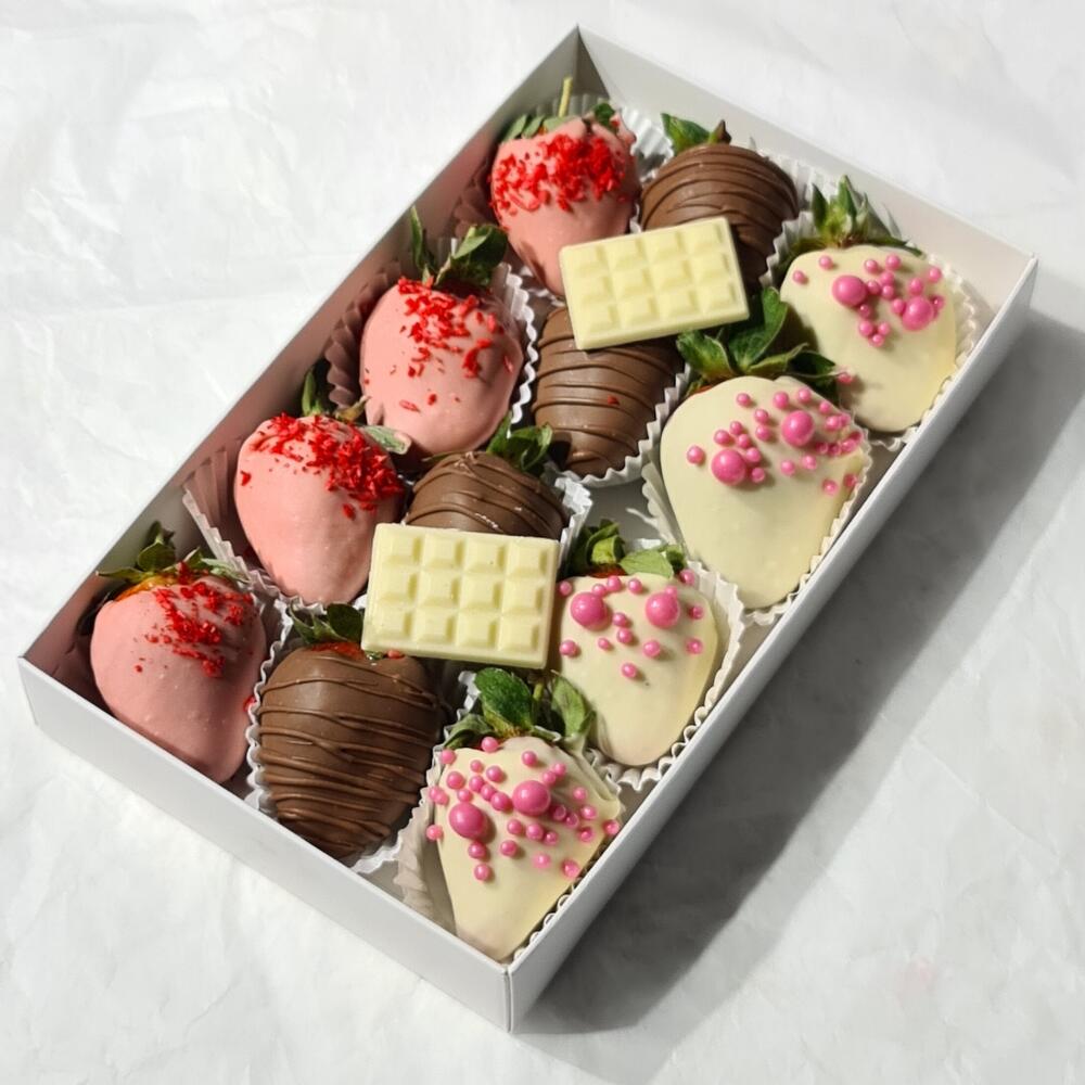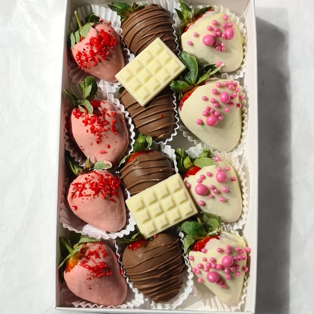 Клубника в бельгийском шоколаде, украшенная воздушным рисом и кокосовой стружкой