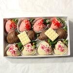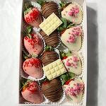 Сочная клубника в бельгийском шоколаде, украшенная воздушным рисом и кокосовой стружкой, отличный вариант подарка милым дамам для поднятия настроения и бесценных улыбок.