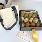 Роскошный подарок для особенного человека — набор «Клубника для любимой» из 12 свежих, отборных ягод, покрытых нежным молочным и белым шоколадом. Каждая клубника украшена золотыми сахарными шариками и миндальными лепестками, что придаёт композиции утончённость и праздничный блеск. Десерт изготовлен вручную из качественного шоколада и свежих ингредиентов, а стильная фирменная упаковка делает этот набор идеальным подарком на любой случай: день рождения, 8 марта, годовщину или просто знак внимания без повода.