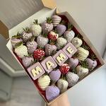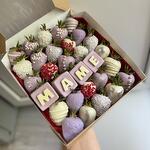 Свежая клубника в белом бельгийском шоколаде, сублимированная малина, кокосовая стружка