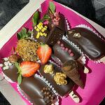 Свежая клубника и бананы , молочный бельгийский шоколад