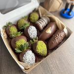 Бельгийский молочный и белый шоколад премиум качества, натуральные красители, турецкая сладкая клубника , присыпка : фисташки, кокосовая стружка, сахарные шарики