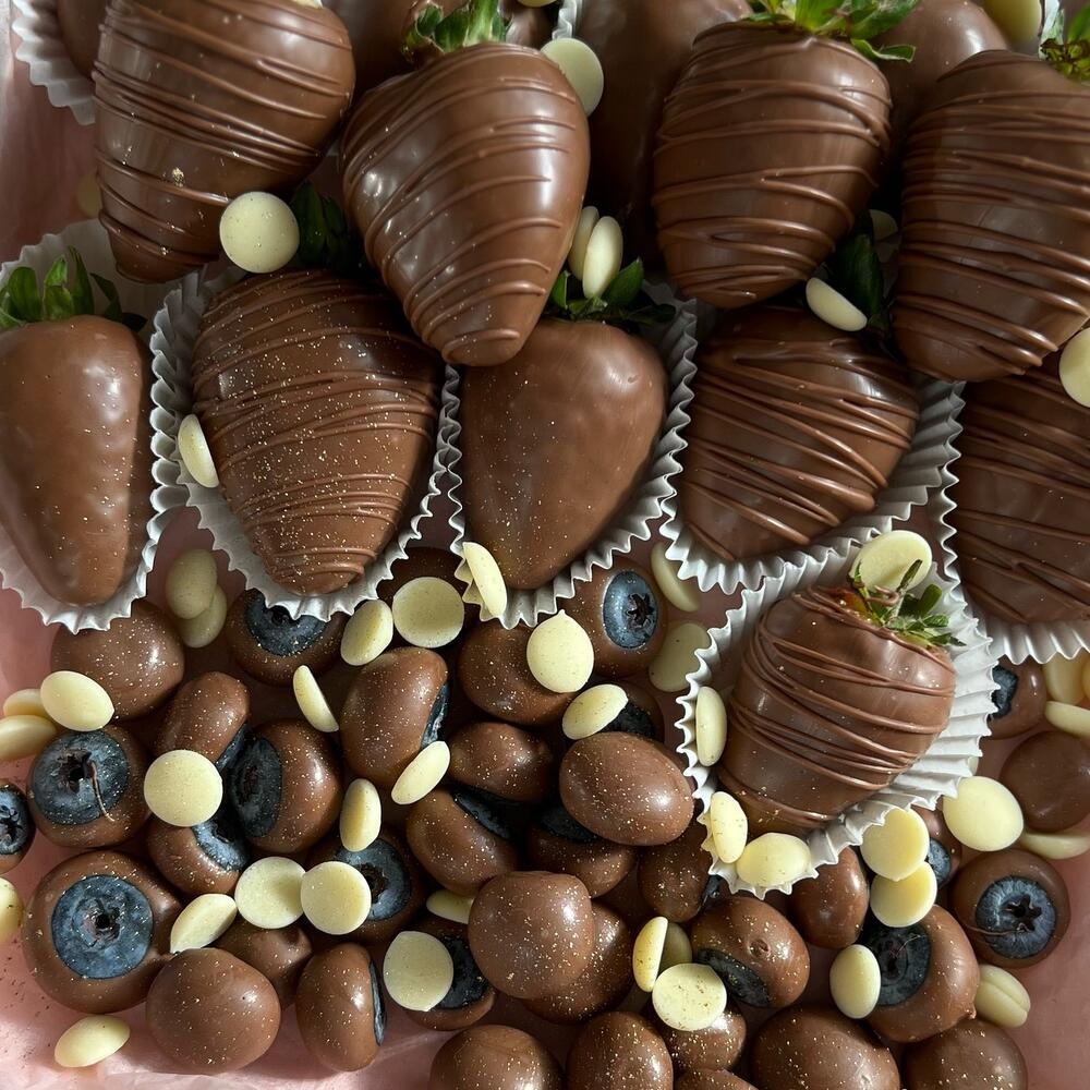 Клубника и голубика в нежном молочном шоколаде