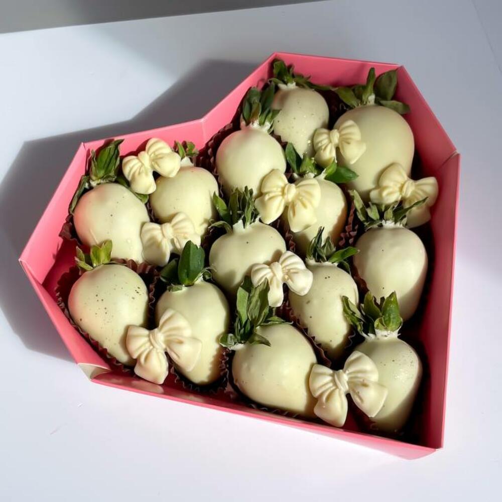 Набор из спелой клубники в сочетании с белым шоколадом. Срок годности 24 часа при условии хранения в холодильнике. Перед употреблением рекомендуем заранее достать десерт из холодильника, и дать ему согреться в течение 15-20 минут при комнатной температуре, так шоколаде станет нежнее и приятнее.