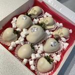 Свежая клубника в белом бельгийском шоколаде, 9 штук Состав шоколада: какао-масло, тертое какао, сухое цельное молоко, сахар, натуральные лецитин и ваниль