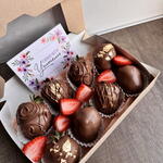 Состав: свежая клубника 8 штук, фисташковая паста, жареное тесто катаифи, бельгийский белый и молочный шоколад Состав шоколада: какао-масло, тертое какао, сухое цельное молоко, сахар, натуральные лецитин и ваниль