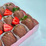 Сет из 16 клубник в шоколаде с элегантным оформлением Совершенство вкуса и эстетики в каждой детали: 16 сочных, отборных клубник, покрытых премиальным бельгийским халяль-шоколадом, украшены утонченными волнами из шоколада. Лаконичный и стильный дизайн, который подчеркивает изысканность вашего выбора. Идеально для подарка, романтического жеста или просто чтобы порадовать себя и близких. Этот сет объединяет вкус, стиль и заботу в каждой ягоде. Varda — подарки от сердца к сердцу. Вкус, который говорит за вас. ❤️
