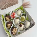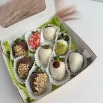 Белый и молочный бельгийский шоколад, орехи , свежая клубника