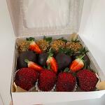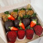 Свежая клубника , молочный бельгийский шоколад, вафельная крошка , сахар