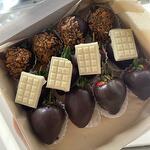 Свежая клубника , молочный бельгийский шоколад, вафельная крошка