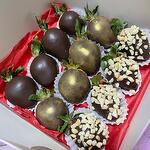 Свежая клубника в бельгийском молочном шоколаде и дробленном арахисе , в подарочной коробочке - 12 шт